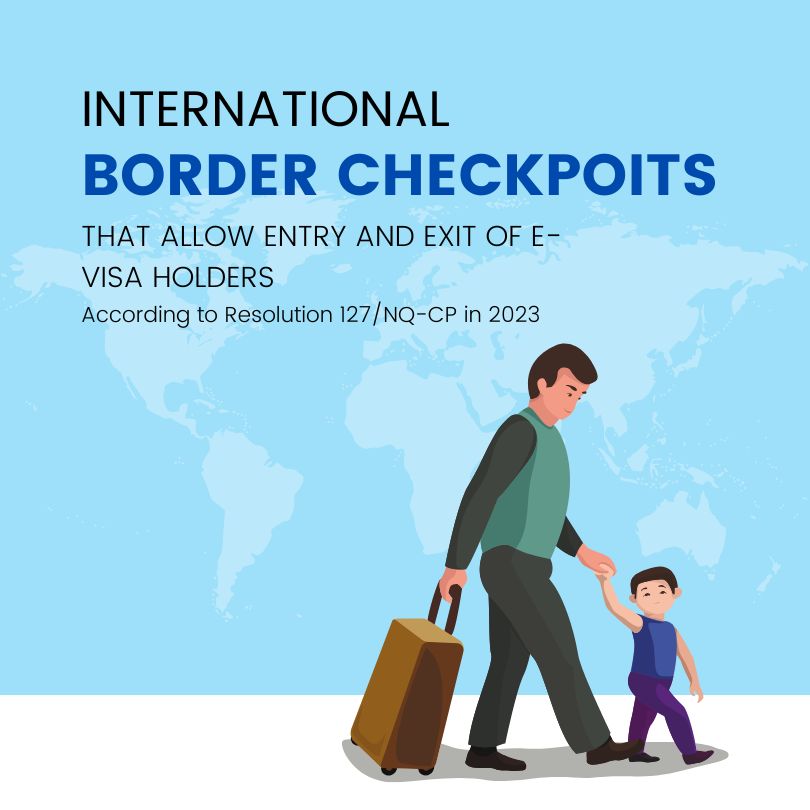 The list of international border checkpoints that allow foreigners to enter and exit with electronic visas according to Resolution 127/NQ-CP in 2023.